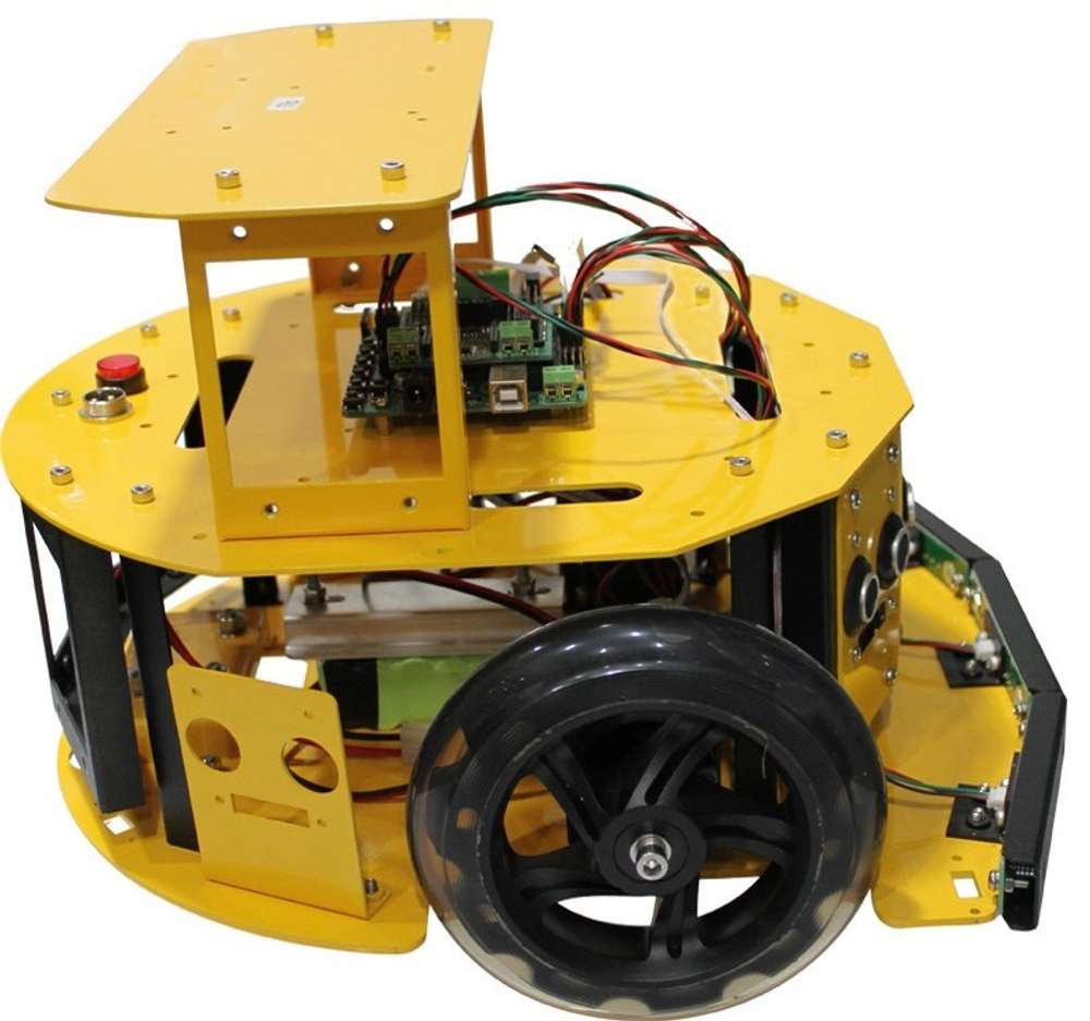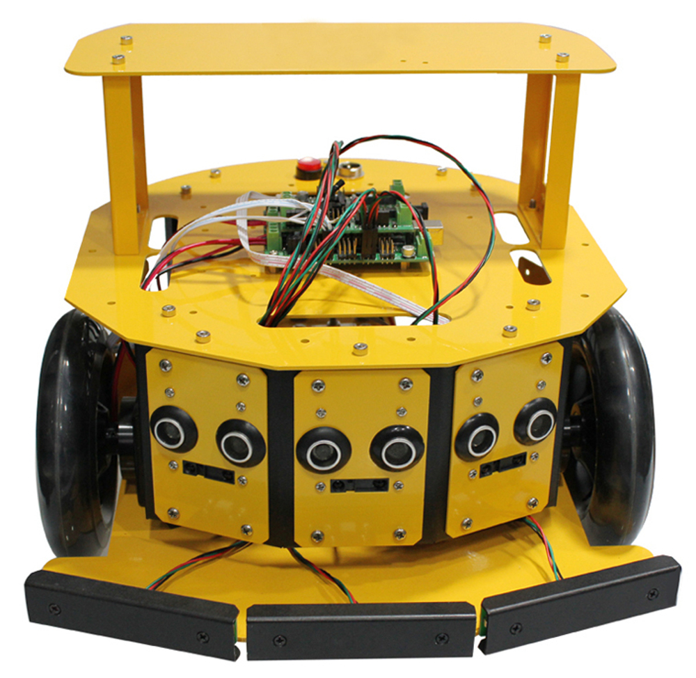 Платформа оснащена бампером безопасности с датчиками прикосновения, ультразвуковыми дальномерами для обнаружения препятствий, микроконтроллером Arduino c платой I/O расширения для управления DC моторами и другими периферийными устройствами. Допустимая нагрузка до 10кг.