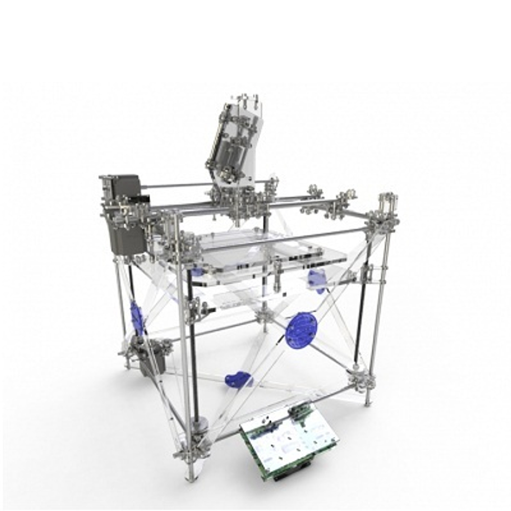 3D принтеры 3D Systems RapMan 3.2 - Single представляет собой куб, собранный из металлических стержней и плоских акриловых деталей. От версии 3.1 модель 3.2 практически ничем не отличается, кроме более удобного сенсорного управления. Работает Rapman 3D по технологии FDM, материалы для печати стандартные: ABS и PLA-пластик. Область печати Rapman 3D составляет 270 x 205 x 210 мм при габаритах 820 x 500 x 490 мм. Весит при этом он всего 17 кг, что позволяет размесить его на любом столе. Рабочая температура экструдера достигает 280˚C, минимальное разрешение печати – 0,2 мм (по оси Z – 0,125 мм). В общем, каких-то экстраординарных особенностей в 3Д-принтере Rapman вы не найдете, однако разработчики и не ставили перед собой такой задачи. Как уже было сказано выше, эта серия принтеров предназначена для обучения, причем не только самому процессу 3D-печати, но и сборке принтеров.
