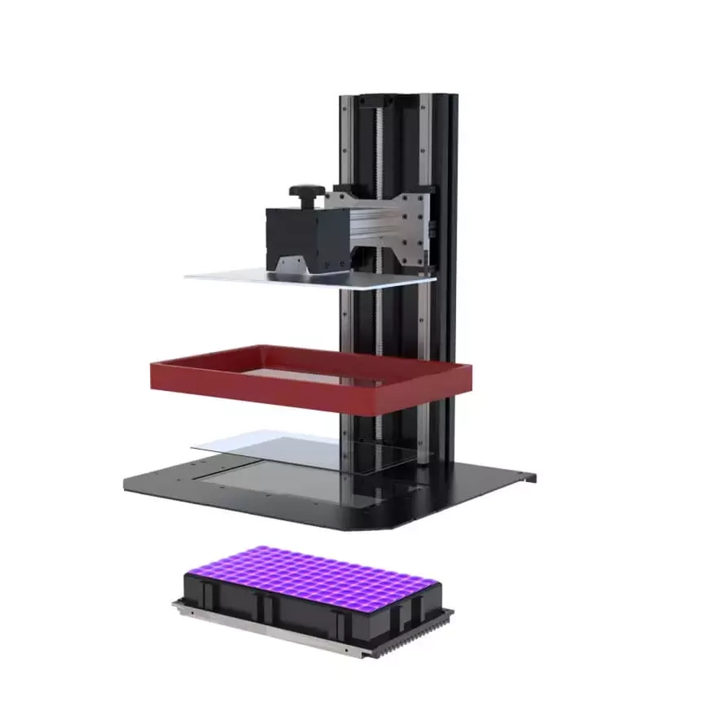 3D принтер 3DIY REX 6K MONO основан на принципе LCD (Liquid Crystal Display). Жидкий фотополимер в нём полимеризуется под воздействием ультрафиолетового излучения. В данной модели за засветку отвечает УФ-модуль PARALED на 300 Вт с длиной волны 405 нм. Её характерная особенность – это светодиодные линзы из кварцевого стекла, которые увеличивают точность печати, снижая паразитную засветку. Для охлаждения модуля PARALED используются два мощных, но тихих вентилятора.