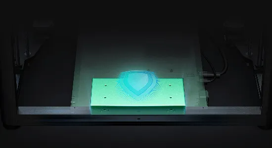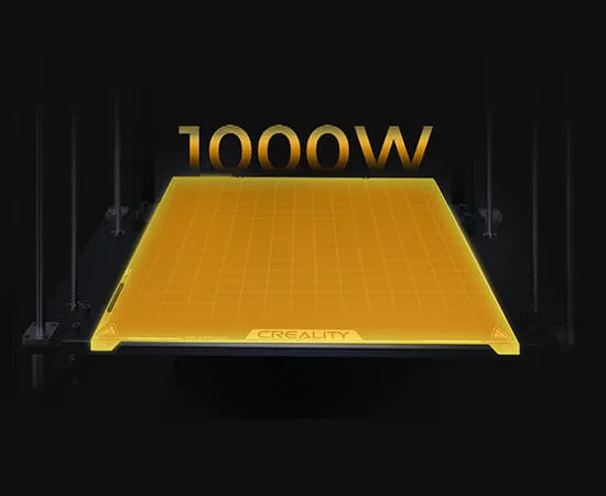 Встроенный нагреватель мощностью 1000 Вт способен разогреть алюминиевую платформу для печати до 80 °C (при максимальной температуре 100 °C) всего за 200 секунд, поддерживая работу с такими материалами, как PLA, PETG, PA, ABS, ASA и другими.