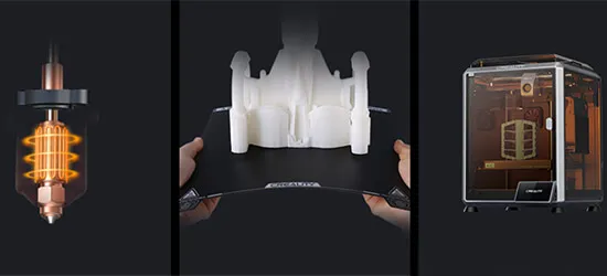 Creality K1C 2025 — это высокоскоростной 3D-принтер, созданный для профессиональной печати сложными материалами. Главной особенностью данной модели является полная совместимость с устройством CFS (Creality Filament System), что обеспечивает бесперебойную работу с филаментами. Он оснащён комплектом экструдера, устойчивого к засорениям, что позволяет работать с углеродным волокном и другими сложными материалами. Максимальная скорость печати достигает 600 мм/с.