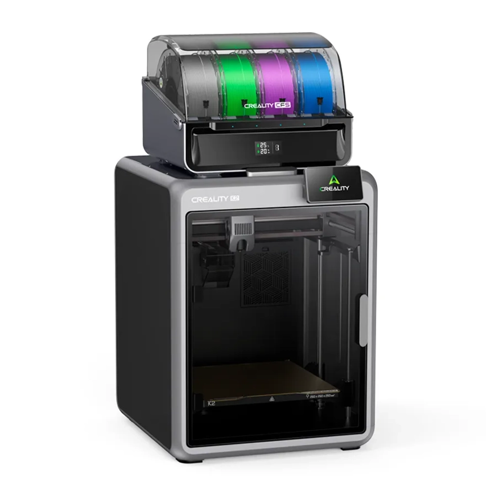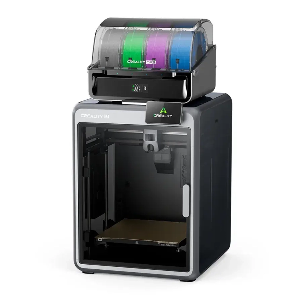 Creality K2 Combo – это инновационный 3D-принтер с закрытым корпусом и интеллектуальной системой CFS (Creality Filament System), обеспечивающей многоцветную печать и удобное хранение филамента. Благодаря герметичным боксам для материала и возможности подключения до 4 систем CFS, принтер поддерживает печать 4 цветами одновременно, а при расширенной конфигурации – 16-ю цветами.