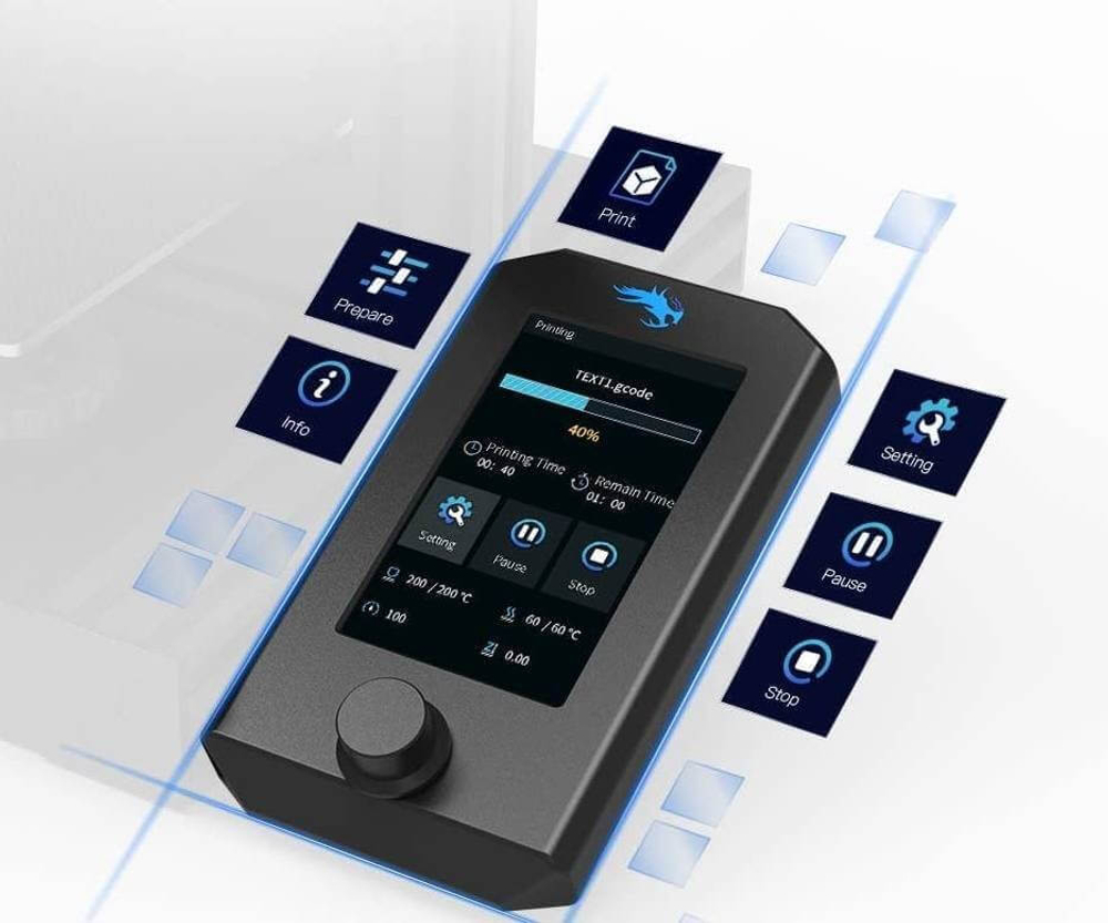 Проверенный экструдер с максимальной температурой 250 градусов легко справляется с наиболее популярным термопластиками PLA, PETG и даже гибкими материалами TPU. Благодаря наличию подогреваемой стеклокерамической платформы с максимальной температурой 100 градусов появляется возможность использовать для печати ABS. Ещё одной интересной особенностью 3D принтера Creality Ender-3 V2 можно считать использование поворотного крана для подачи пластика в экструдер, который облегчает загрузку материала.