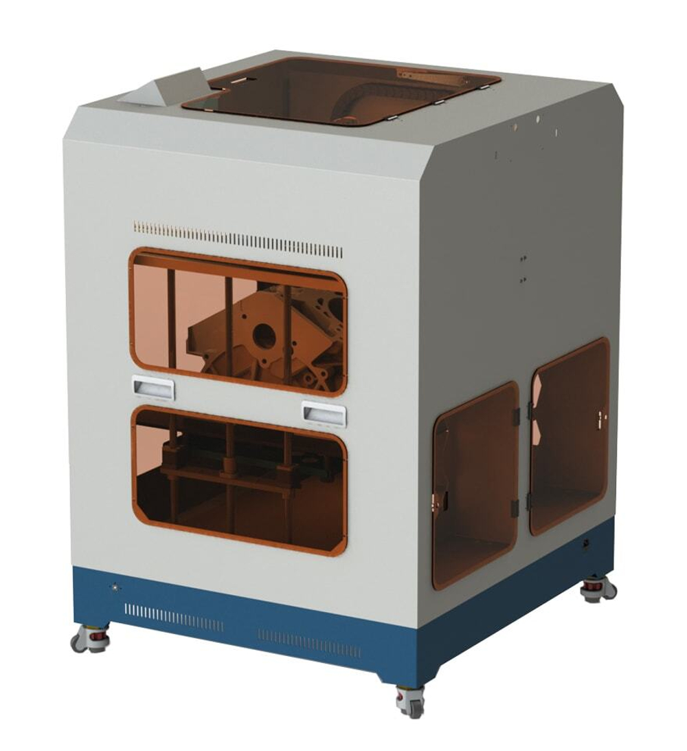 Для максимально эффективного производства 3Д принтер оснащён вместительной рабочей камерой. Его область построения составляет 600х600х600 мм с активным охлаждением, и это даёт возможность сразу печатать объёмные детали без склеек и спаек.