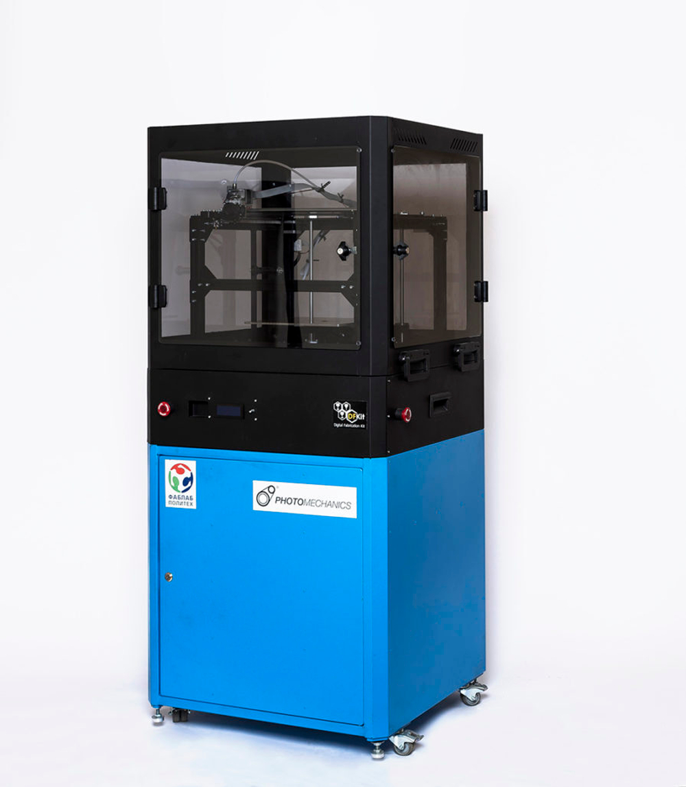 Экструзионный 3D-принтер, выполненный по кинематической схеме H-bot. Станок оснащен подогреваемой платформой мощностью 600 Вт, обеспечивающей возможность печати ABS пластиком, нейлоном.