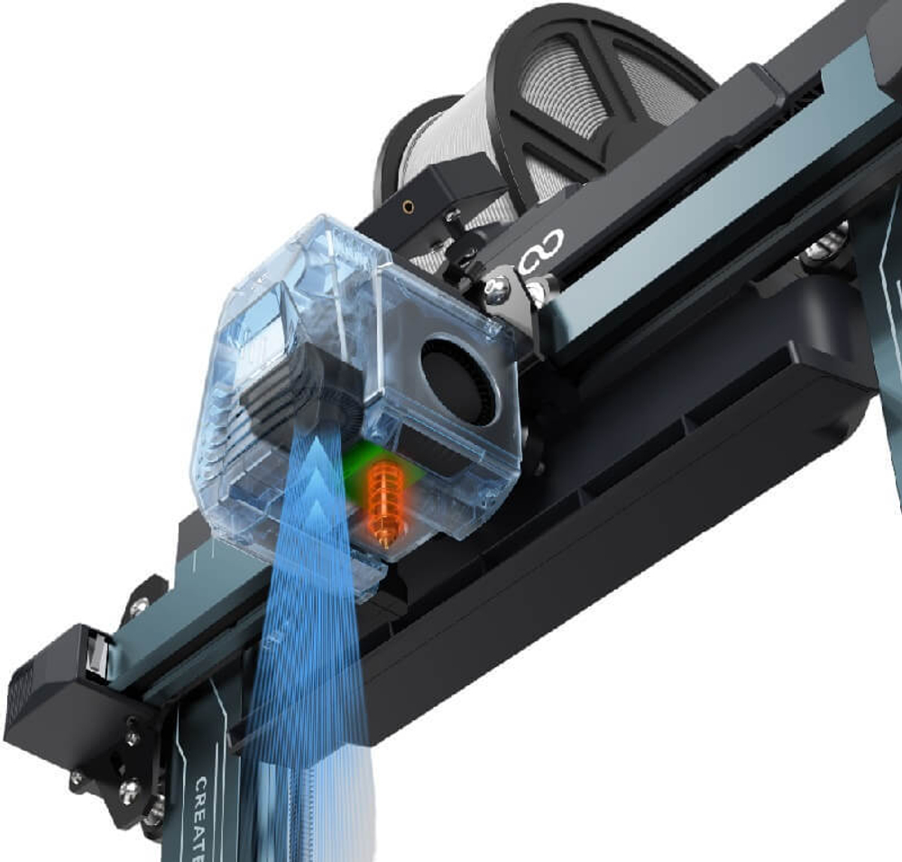 Модель Neptune 4 имеет мощную систему охлаждения, состоящую из модуля отвода тепла и интеллектуальной системы контроля обдува. Также в систему входит вспомогательный модуль рассеивания тепла с 4 вентиляторами, которые обеспечивают ускоренный отвод тепла в режиме быстрой печати. После завершения печати обдув отключается автоматически.
