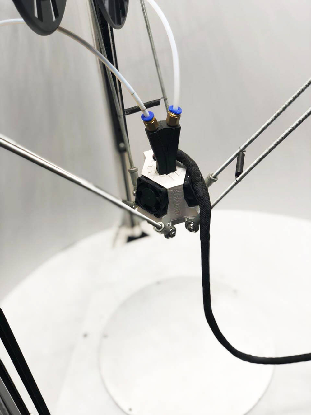 Главной отличительной особенностью является возможность печатать двумя видами пластика одновременно, что позволяет создавать уникальные и сложные предметы. Также, 3D принтер обладает открытым корпусом и позволяет наблюдать за печатью в обзоре 360 градусов.