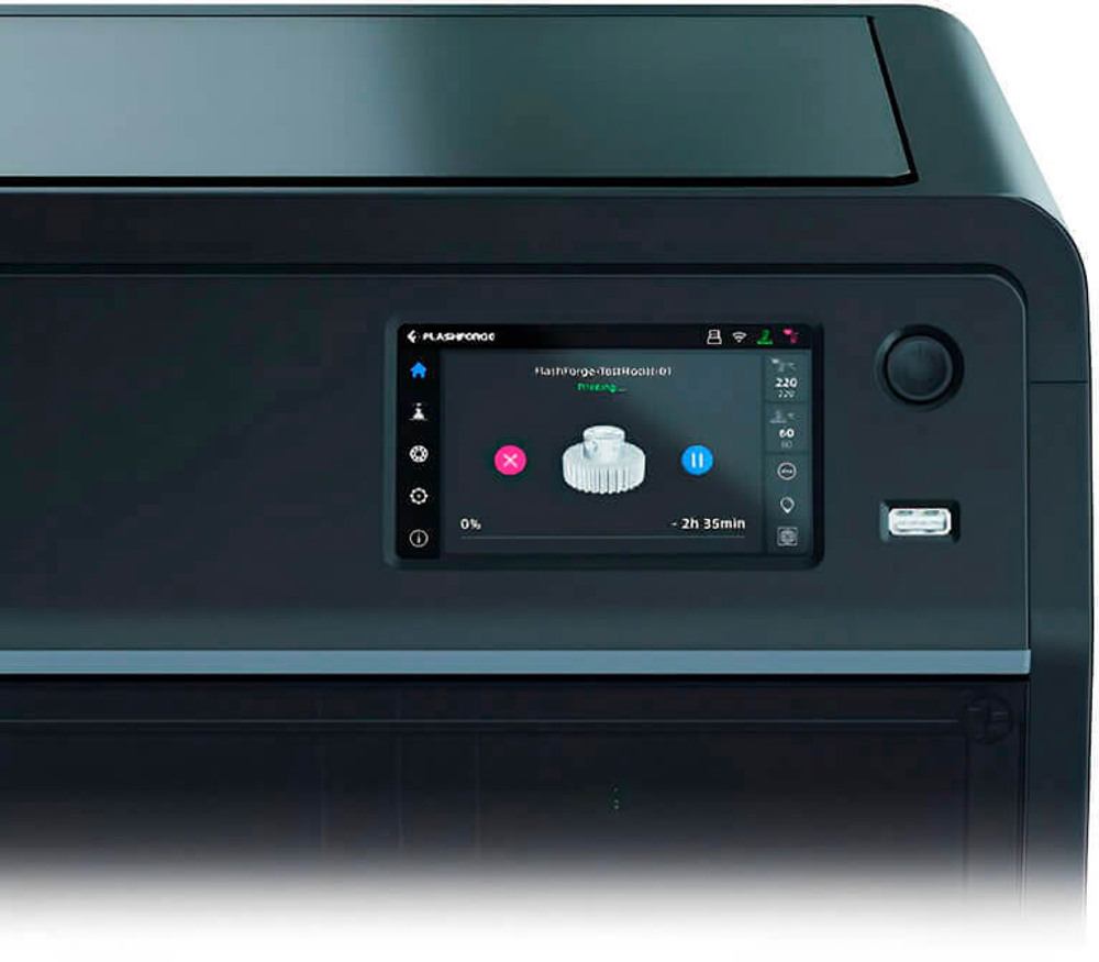 Управляйте на расстоянии: С Adventurer 5M Pro вы получаете удобство дистанционного мониторинга, напоминание об окончании филамента, восстановление после потери питания, видеокамеру, удобное управление фермой принтеров и многое другое. Принтером можно управлять и через 4,3 дюймовый цветной сенсорный дисплей. Удобный и простой интерфейс экрана управления позволит вам настраивать и управлять всеми процессами во время работы принтером на все 100%! Передавать файлы на принтер можно через Wi-Fi, Ethernet или USB.