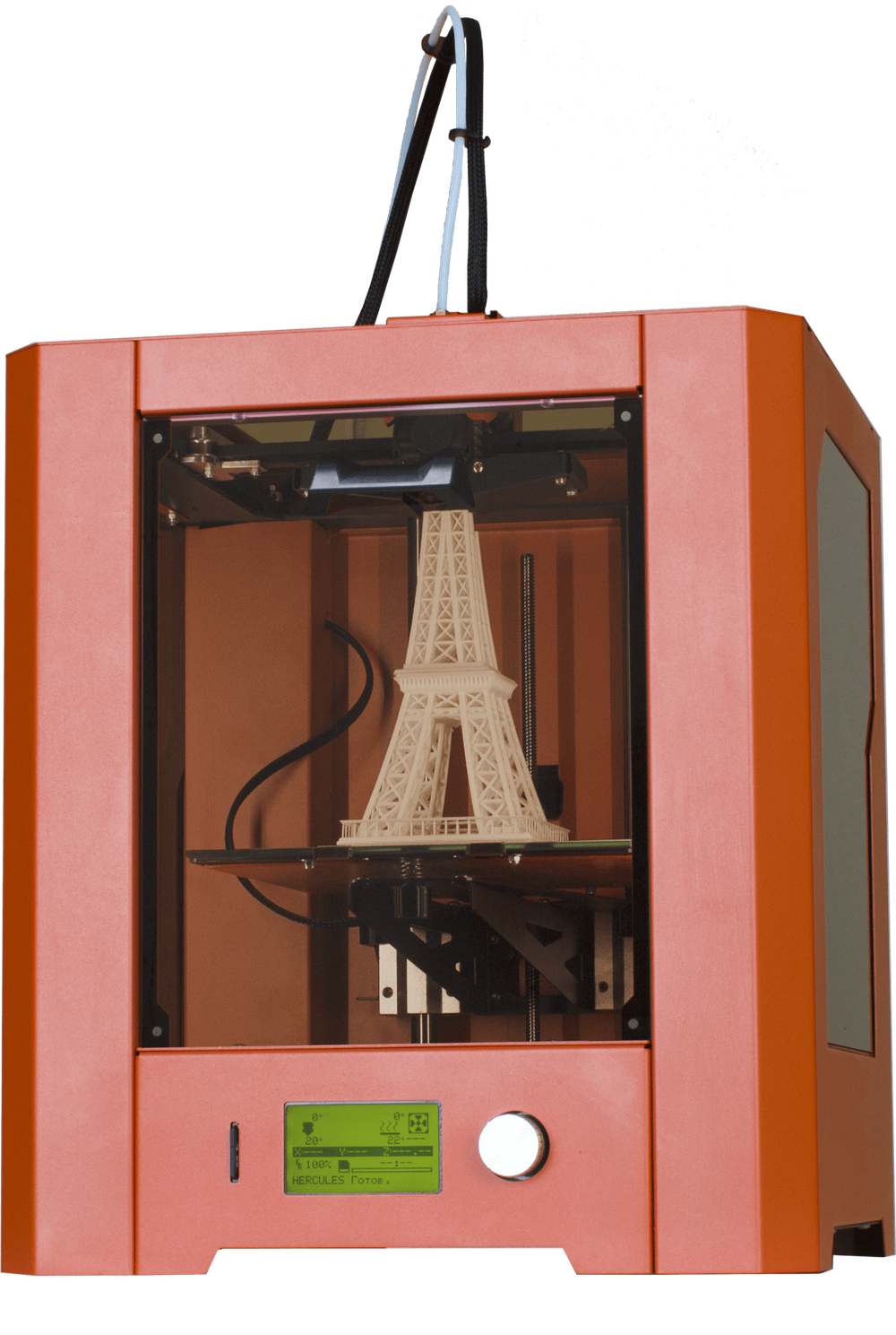 Hercules быстро печатает небольшие детали из любых материалов слоем от 20 микрон. Идеально подойдёт для дома или офиса: занимает меньше места, чем офисный принтер. Очень прост в обращении.