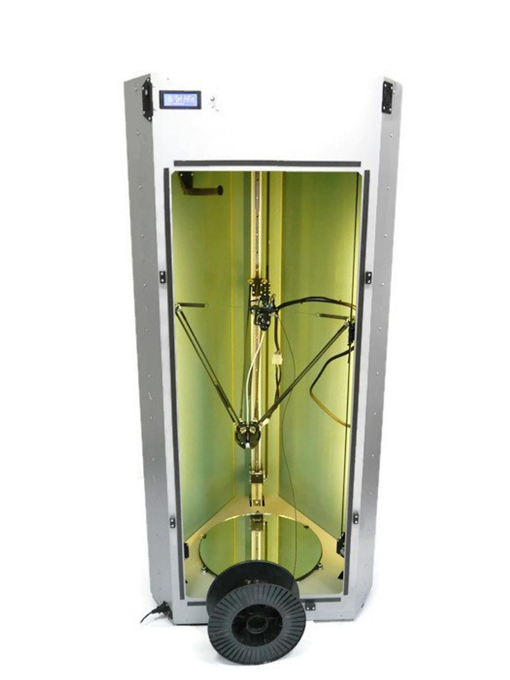 Prism Pro – FDM принтер профессионального уровня, выполненный по схеме «дельта-робот». Устройство оснащается закрытым корпусом и подогреваемым рабочим столиком, что позволяет печатать широким ассортиментом расходных материалов, включая PLA, PVA, ABS, HIPS и другие. Область построения достигает 400х850мм с минимальной толщиной наносимого слоя всего в 50 микрон.