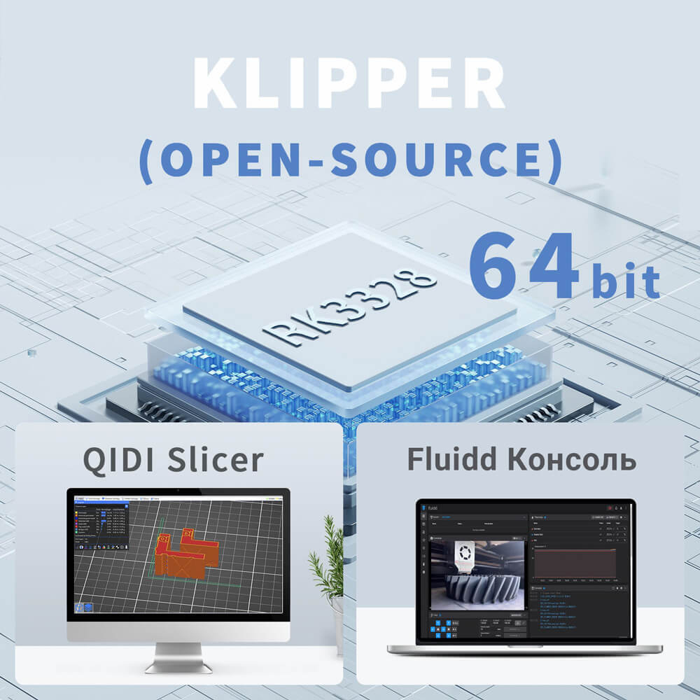 Управление принтером максимально удобное - с помощью сенсорного экрана в верхней части самого принтера или в ПО QIDI Slicer. Простой интерфейс слайсера с двумя режимами (стандартный и экспертный) обеспечивает качественную настройку 3D принтера независимо от опыта пользователя.