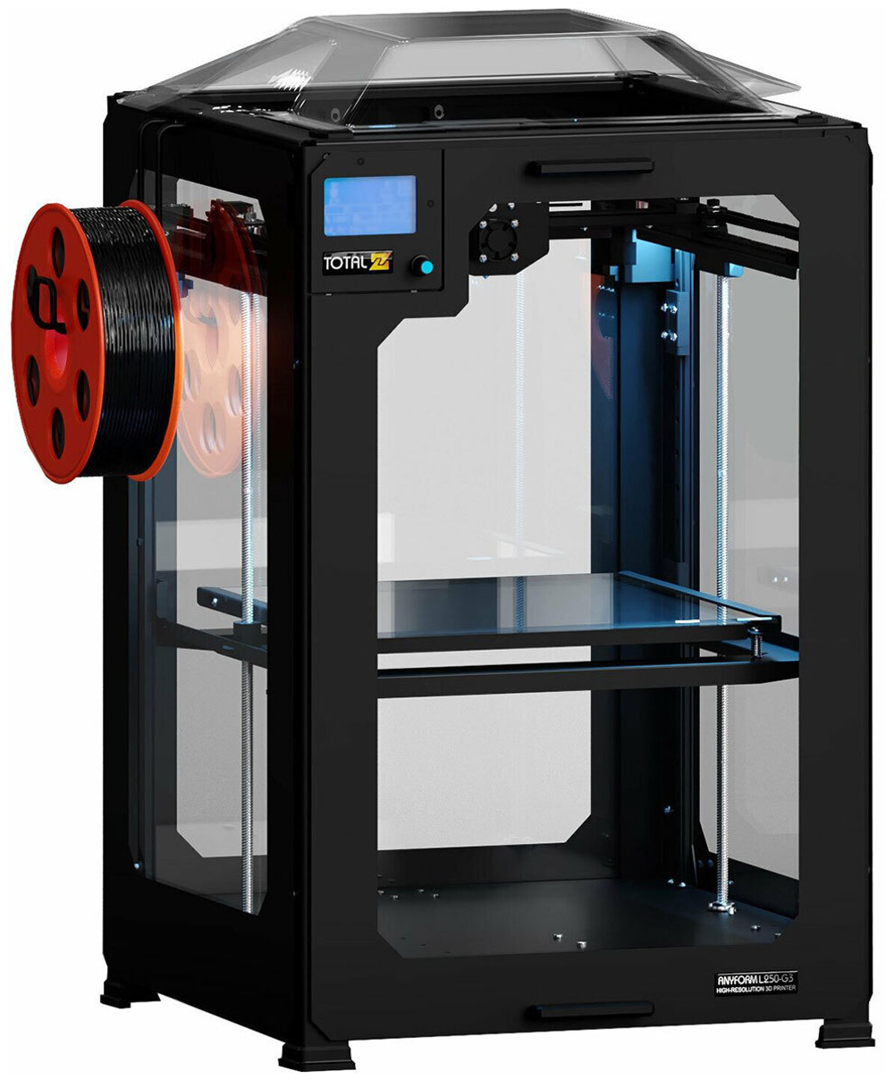 3D принтер Total Z Anyform L250-G3(2X) построен на прогрессивной кинематике H-bot. За исключительно высокую точность позиционирования и печати отвечают четыре рельсовые направляющие Hiwin для печатного стола, три рельсовые направляющие для печатающей головки и два ходовых винта на оси Z.