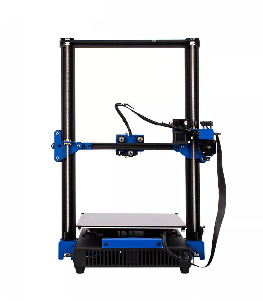 Устройство с традиционной картезианской кинематикой имеет открытую конструкцию, позволяющую наблюдать за ходом печати. Сверху рама усилена поперечной планкой, что делает печать более точной. Двойной привод оси Z позволяет печатать со скоростью до 150 мм/с без снижения качества.