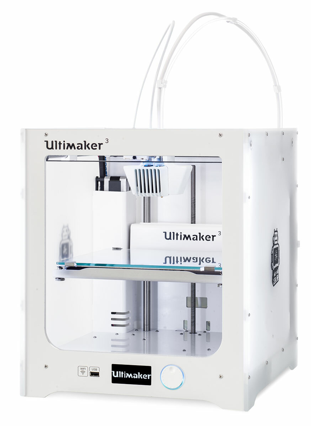 - максимальная автоматизация процесса - данная система поможет избежать ошибок во время печати. Ultimaker 3 оснащен умной системой распознавания расходных материалов, которая основана на NFC технологии (ближней бесконтактной связи). Кроме того, имеется функция автоматической калибровки рабочего стола, обеспечивающая идеальную печать с учетом фирменных материалов. Все эти качества максимально упрощают процесс печати и сохраняют высокое качество независимо от пользовательских навыков.