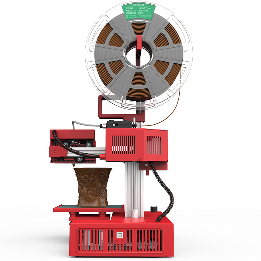 Достаточно простой и незамысловатый дизайн Super Helper компенсируется ярко-красным цветом корпуса. Согласитесь, необычная расцветка для 3D-принтера!