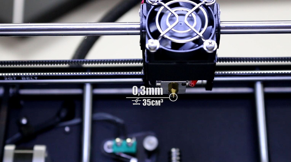 Максимальная скорость печати: 50 см3 в час (для сопла 0.4мм);