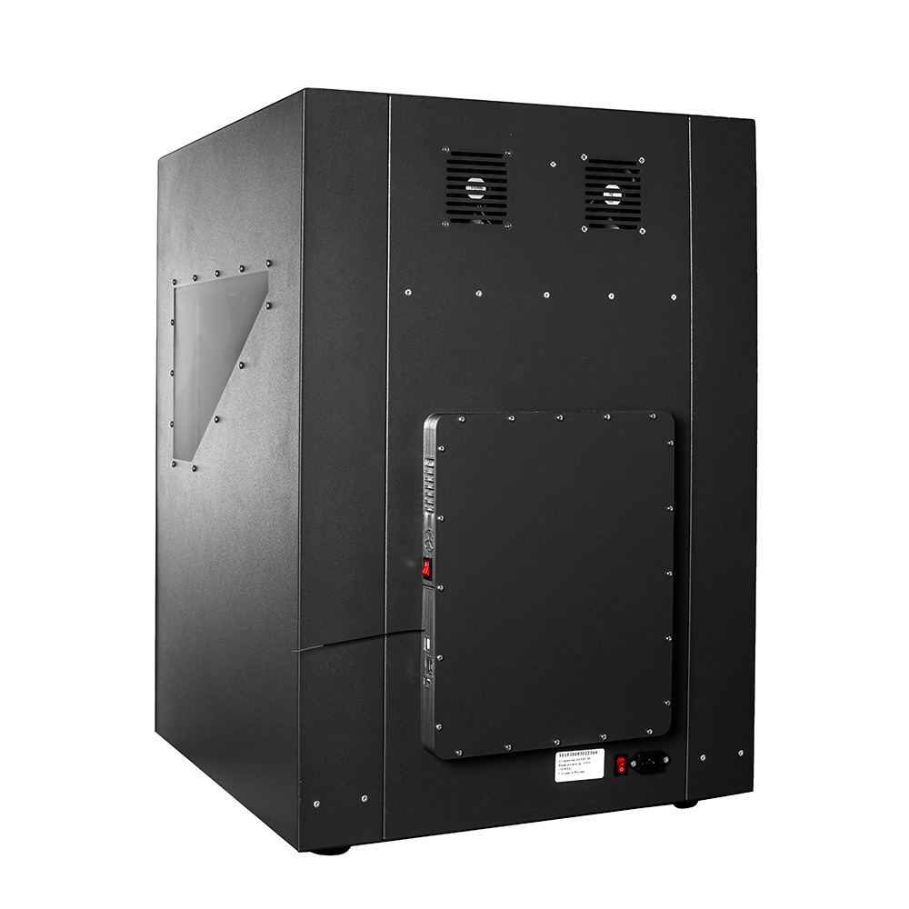 Это современное FDM-устройство с полностью закрытым цельнометаллическим корпусом, областью построения 300×300×400 мм с системой охлаждения и подогреваемым до 120 градусов по Цельсию печатным столом.