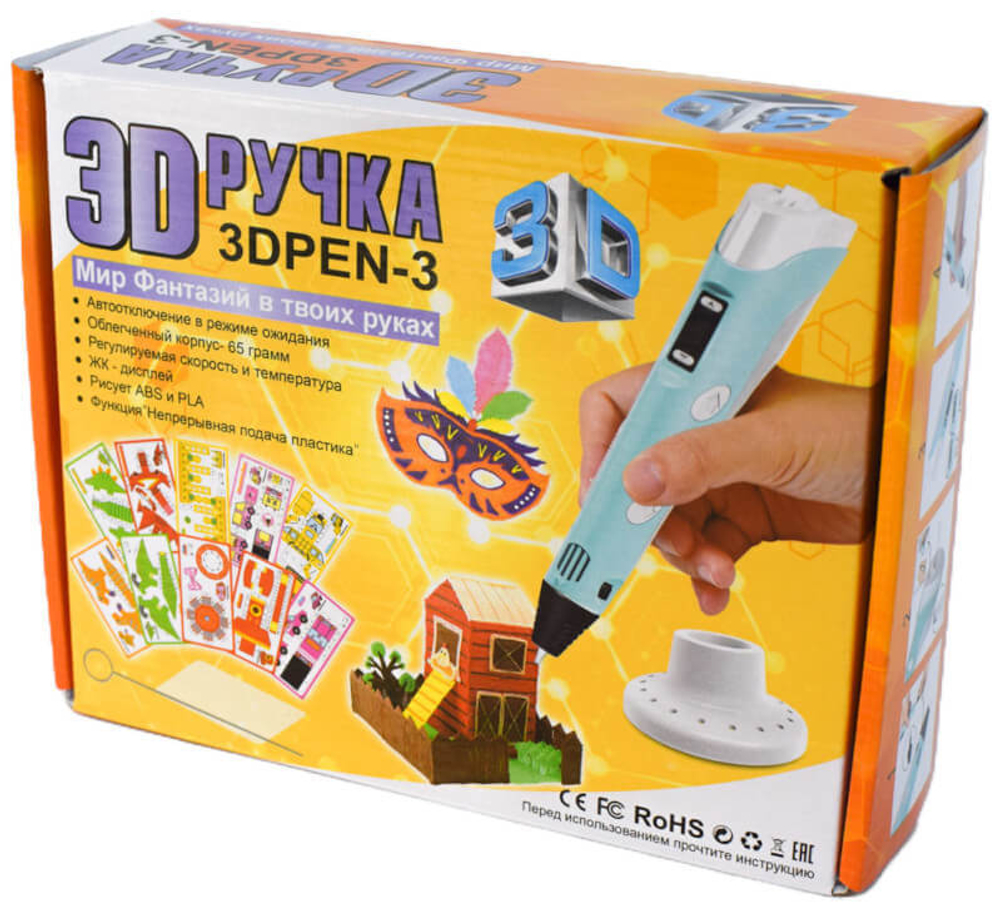 3D ручка 3D Pen 3.0 – функциональная, удобная и безопасная 3Д-ручка, которая подойдёт как для детей, так и для взрослых. В комплект поставки, помимо необходимых аксессуаров, входит набор из 10 красивых трафаретов для рисования и создания трёхмерных моделей.