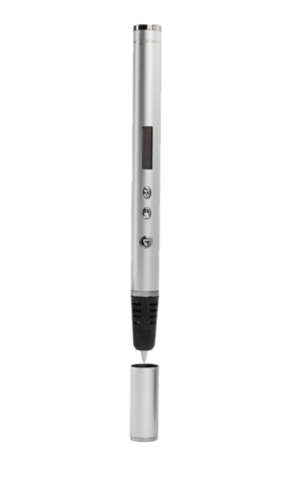 Компактная и лёгкая 3D ручка Myriwell RP900A для творчества и моделирования, выполнена в стильном алюминиевом корпусе серебристого цвета.