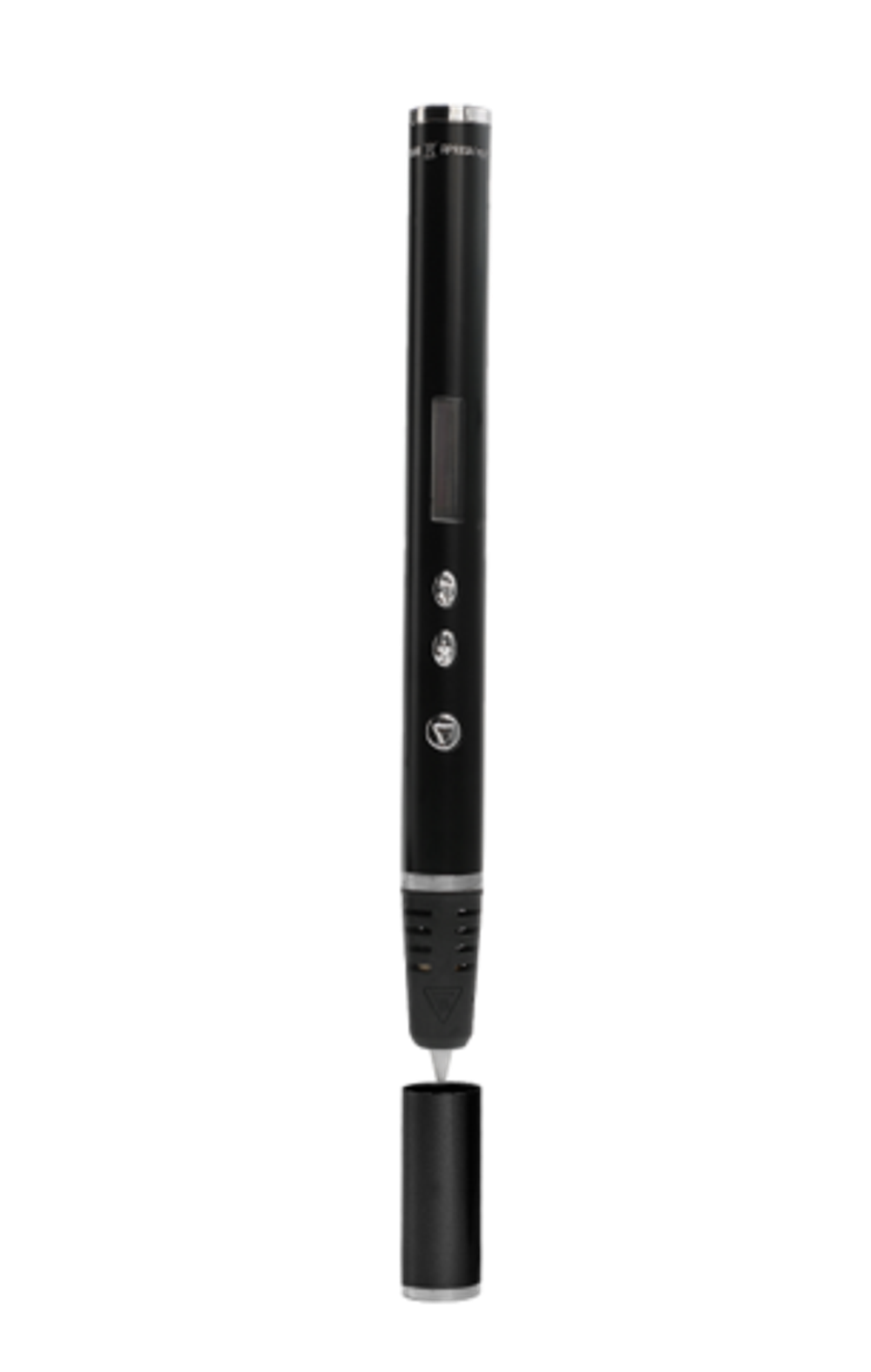 Узнать и отрегулировать скорость подачи нити и температуру экструдера можно с помощью OLED-дисплея и небольших кнопочек, расположенных на корпусе ручки. Кроме того, на дисплее отображаются сведения о типе используемого пластика. Данная модель может заправляться не только ABS, но и PLA пластиком.