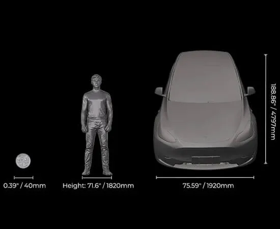 Благодаря увеличенной скорости сканирования, Raptor Pro обрабатывает до 660 000 точек в секунду, что в 1,6 раза быстрее, чем у предыдущей модели. Это делает его идеальным инструментом для работы с крупными объектами, такими как автомобильные детали, инженерные конструкции или даже человеческое тело.