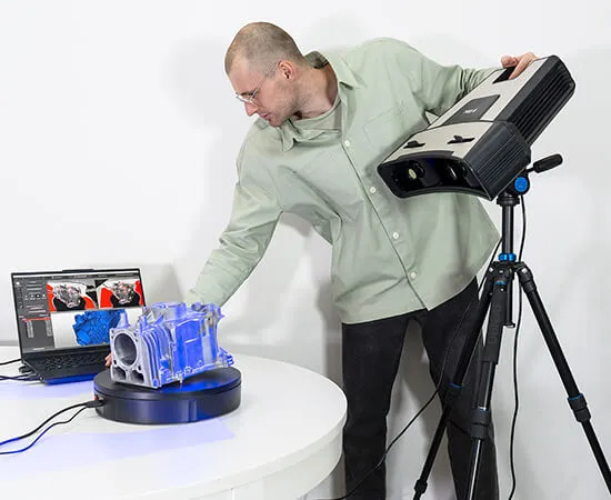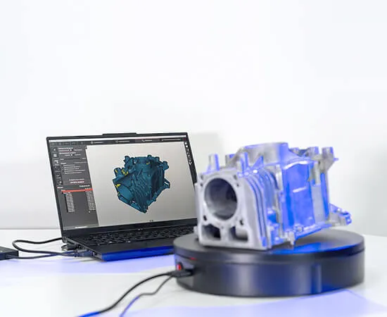 3. Наконец, режим поворотного стола с маркерами обеспечивает быстрое и легкое сканирование: достаточно поместить объект на поворотную платформу и запустить процесс нажатием одной кнопки. При вращении объекта фрагменты модели автоматически выравниваются, что еще больше упрощает процесс сканирования.