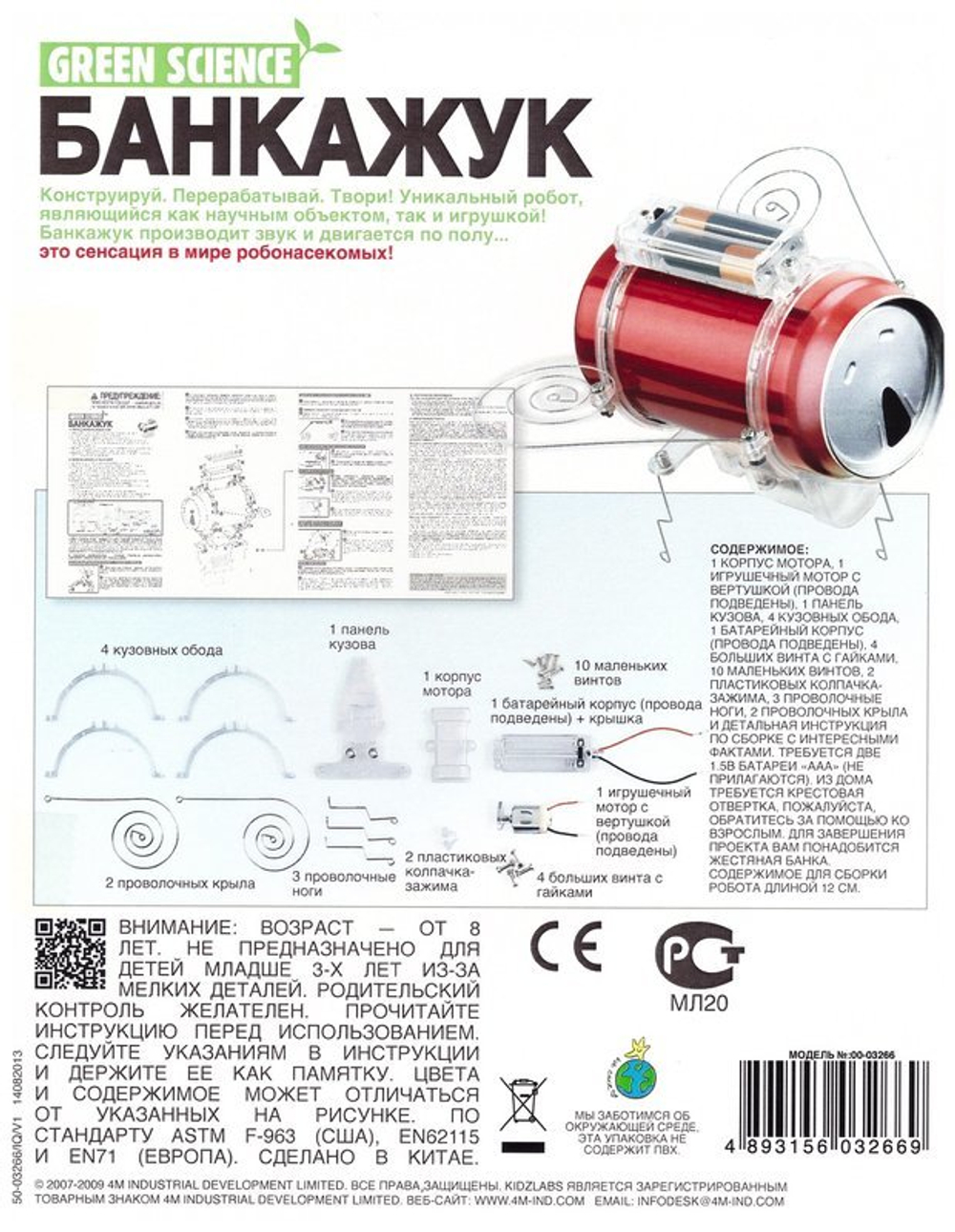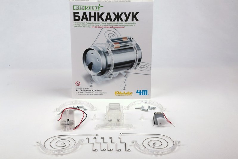 Конструктор «Банкажук» от 4М раскроет в малыше новый талант – талант инженера. При помощи деталей, входящих в набор, ребенок превратит обычную алюминиевую банку в робота-жука. Сам! Вам останется только наблюдать и восхищаться, с каким азартом юный инженер выполнит работу.
