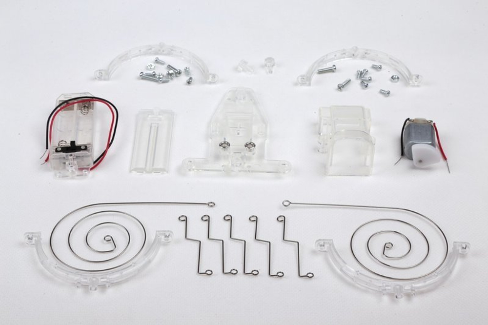Банкажук движется по полу за счет вибрации, которую создает вертушка двигателя. Как это происходит? Энергия, вырабатываемая батарейками, заставляет мотор вращаться с высокой частотой (10000 оборотов в минуту). Вертушка на конце оси имеет смещенную плоскость вращения, которая и вызывает вибрацию. Если бы вертушка была симметричной (в форме диска), ее вращение не производило бы вибрацию, и банкажук не смог бы двигаться.