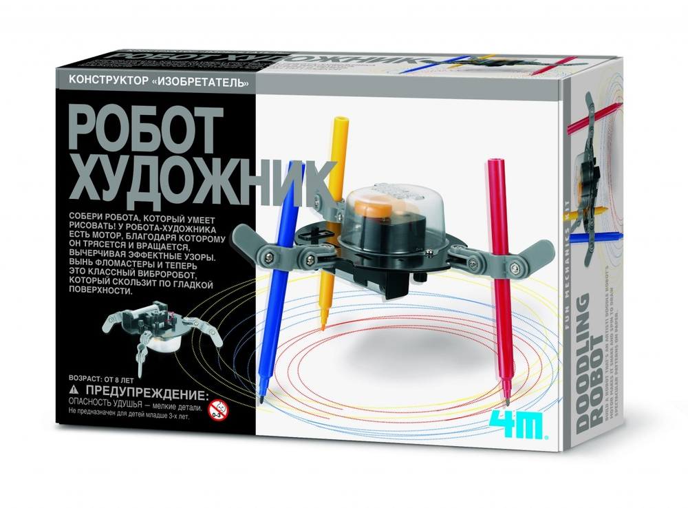 Сенсация в мире техники! Появился робот, который умеет рисовать картины. А главное, его можно собрать своими руками с помощью увлекательного набора от 4М. Готовы к неожиданным открытиям? Тогда вооружитесь отверткой и принимайтесь за дело! Инструкция, прилагаемая к набору, подробно расскажет, как сконструировать гениального робота-художника всего за несколько минут.