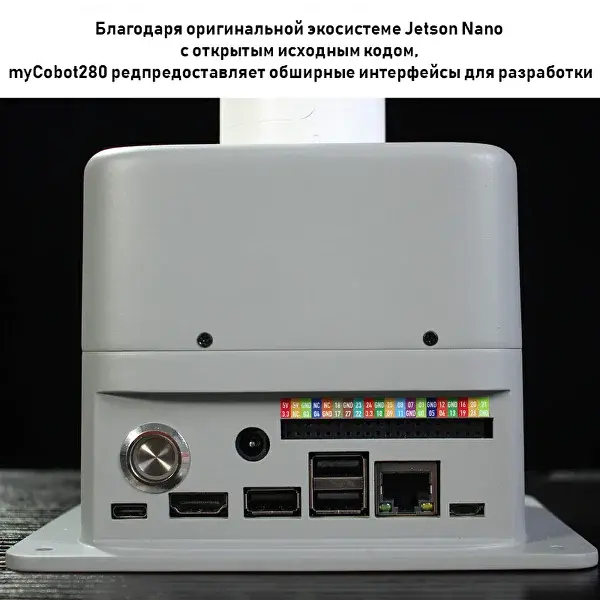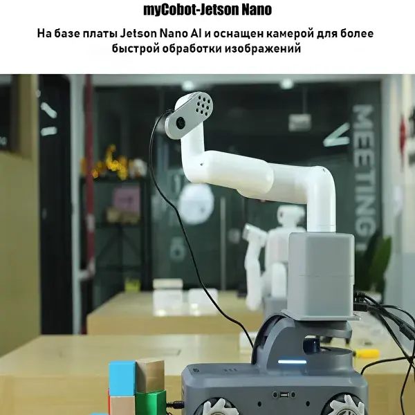 Программируемый манипулятор оснащён шестью высокоэффективными сервомоторами и системой двойного управления (Dual Core: Jetson Nano + M5Stack Atom), что обеспечивает точное движение и быструю обработку данных. Робот работает под управлением Ubuntu Mate 18.04 с предустановленной поддержкой ROS1/ROS2, OpenCV, Python и библиотек для машинного обучения.