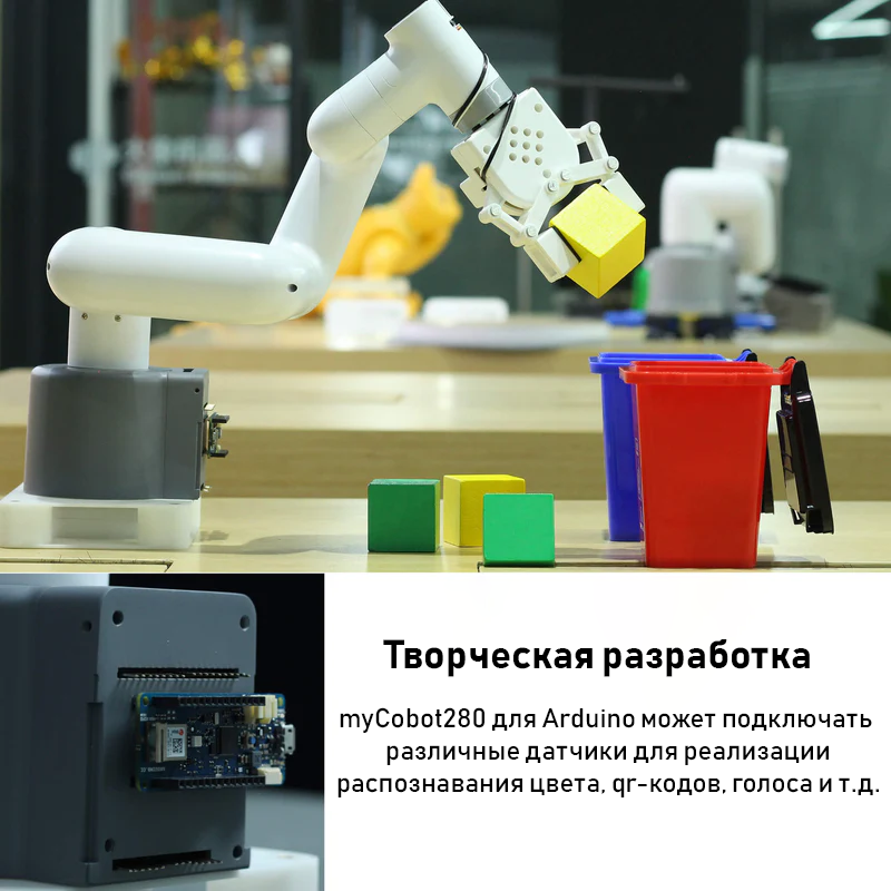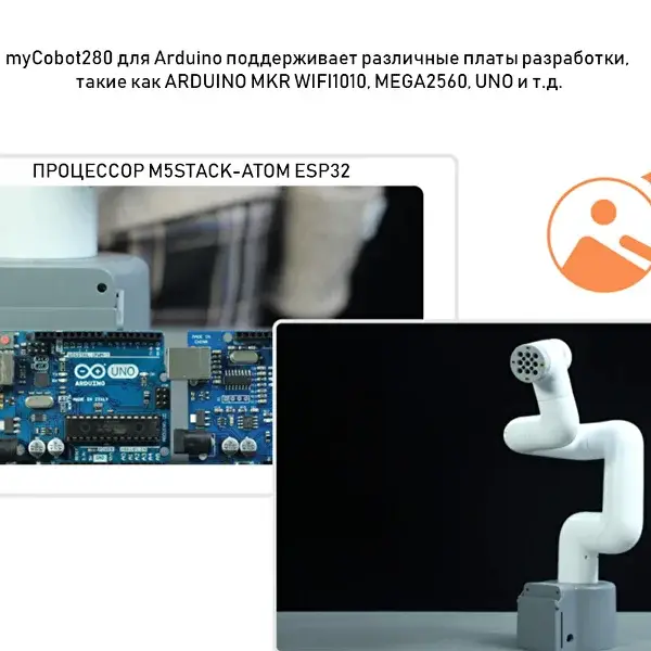 6-осевой робот-манипулятор 280 серии Arduino создан для изучения робототехники, электроники и программирования. В основе работы кобота лежит экосистема Arduino и вычислительный модуль M5Stack-Atom ESP32, обеспечивающие гибкость, простоту настройки и поддержку различных плат — Arduino MKR WiFi1010, MEGA2560, UNO и других. Такое решение делает коллаборативный робот идеальной платформой для обучения робототехнике с нуля, инженерных экспериментов и проектной деятельности в образовательных учреждениях.