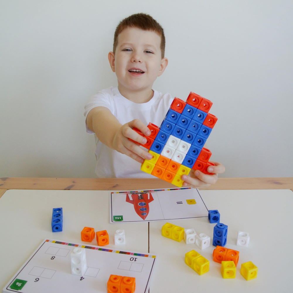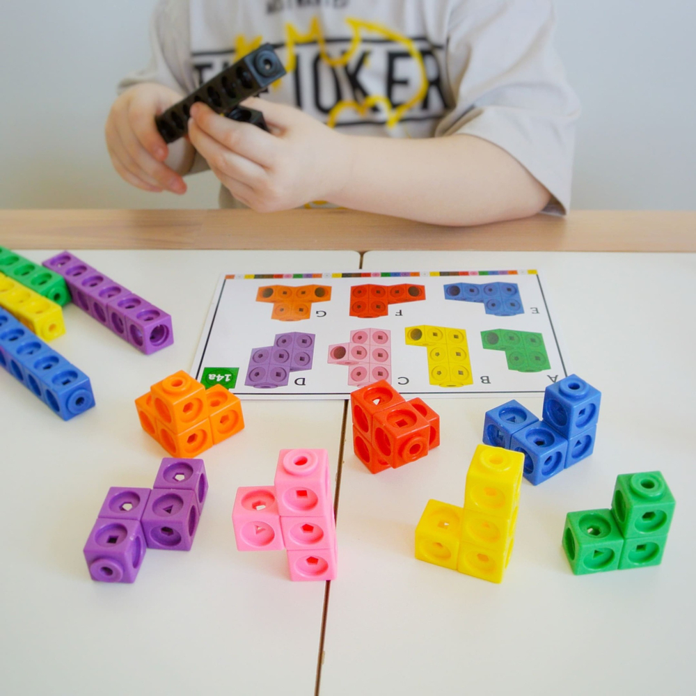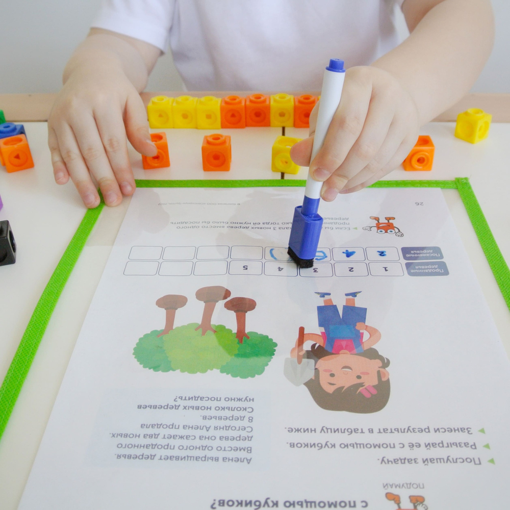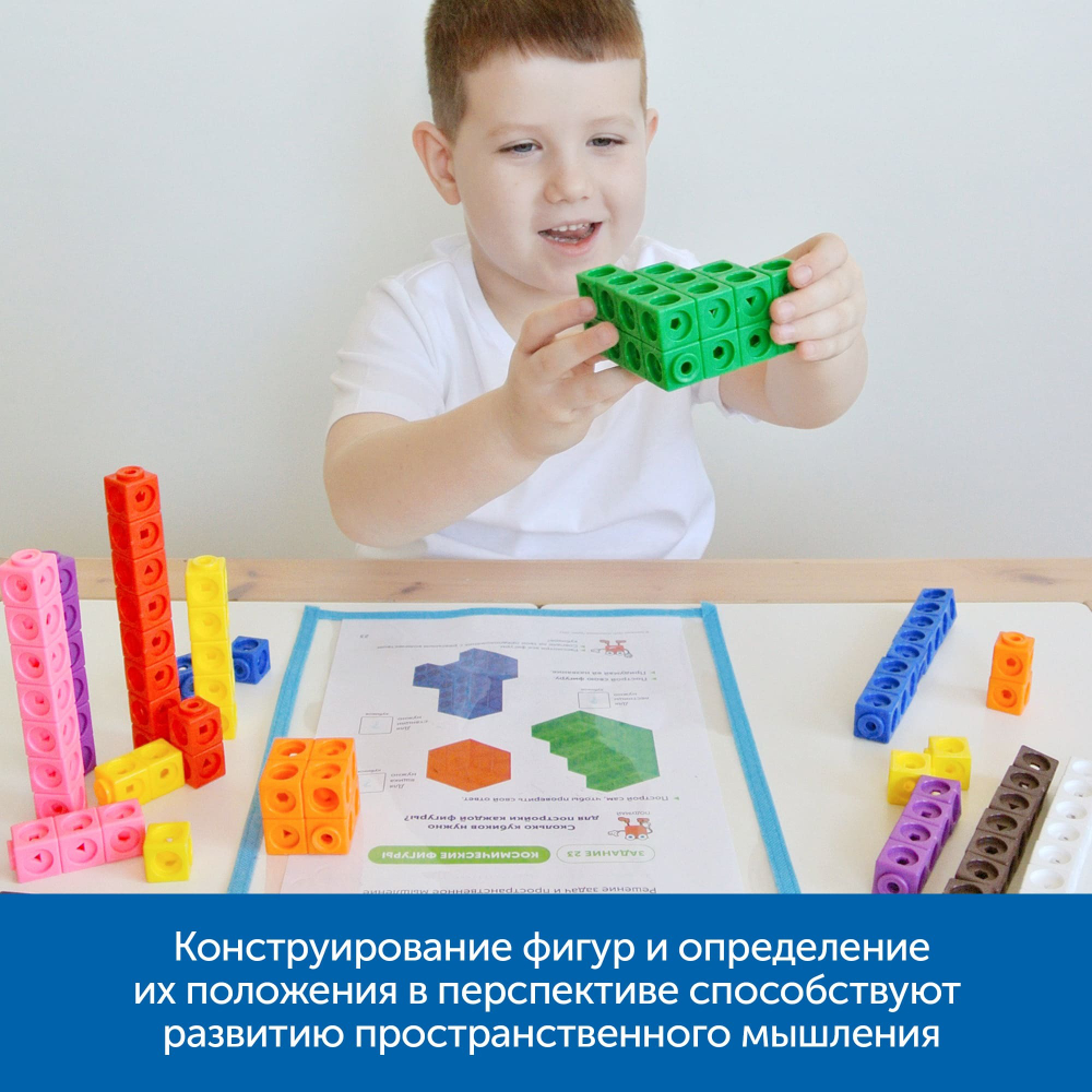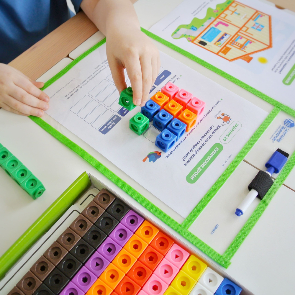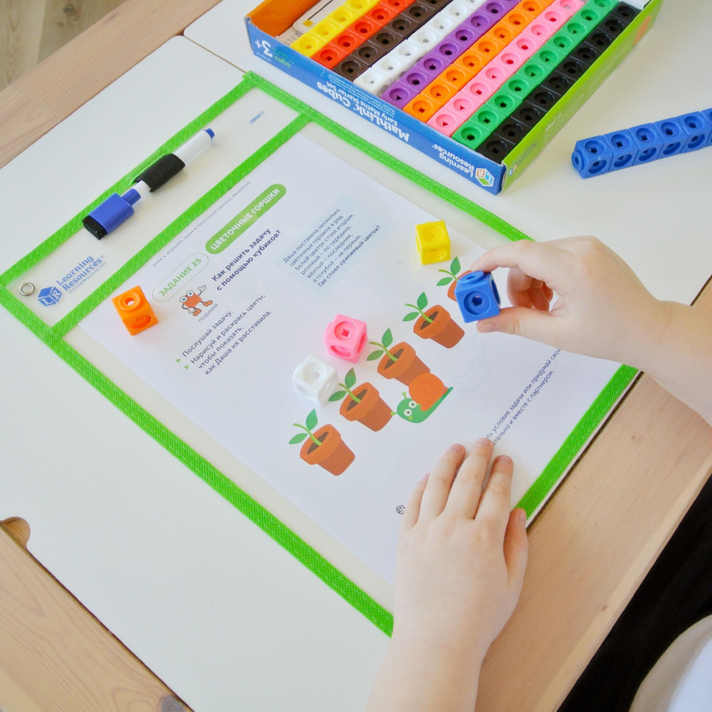 Красочные карточки с заданиями и соединяющиеся кубики вместе превращают учебу в увлекательное времяпрепровождение.