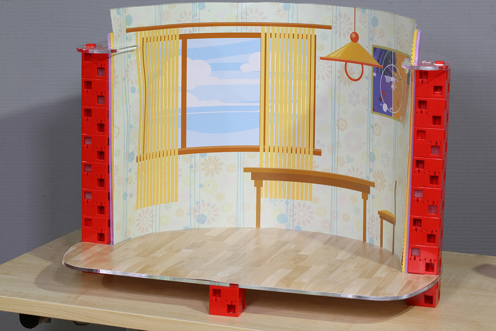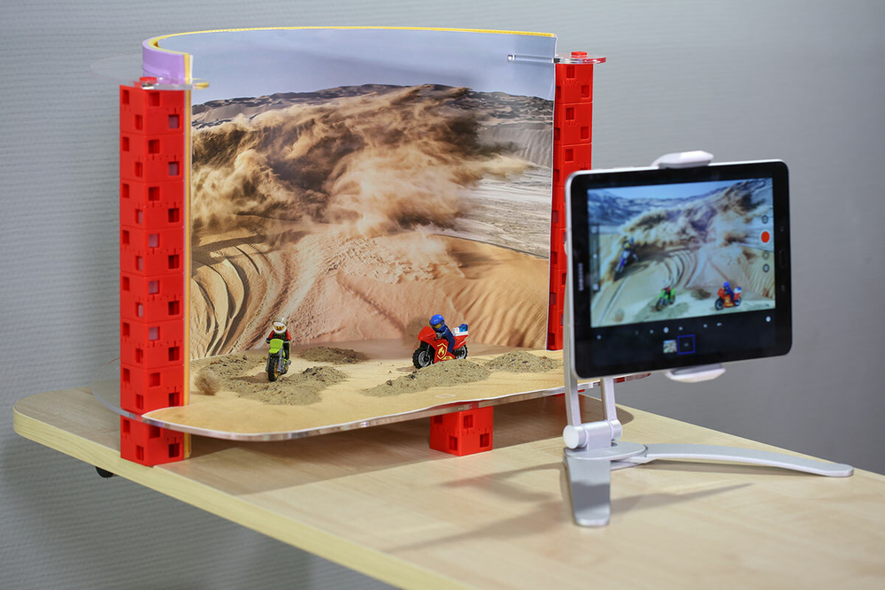 Одним из главных преимуществ данного решения является уникальная гибкость, позволяющая оперативно создавать необходимое количество съёмочных площадок, не занимая много места, и обеспечивать каждого ребёнка максимальным включением в творческий процесс.