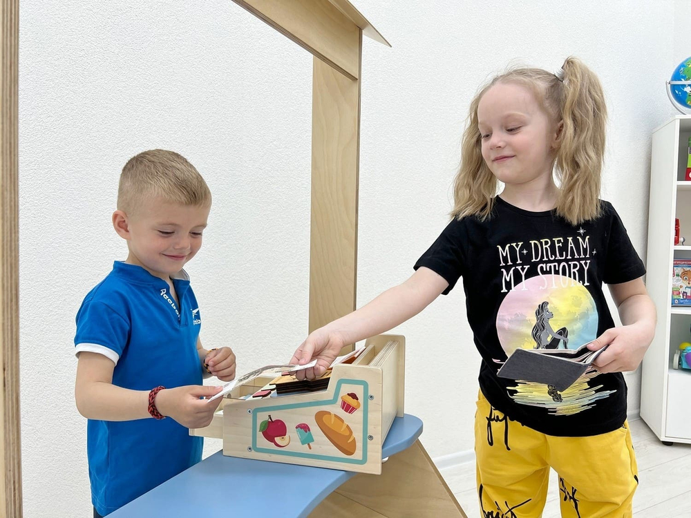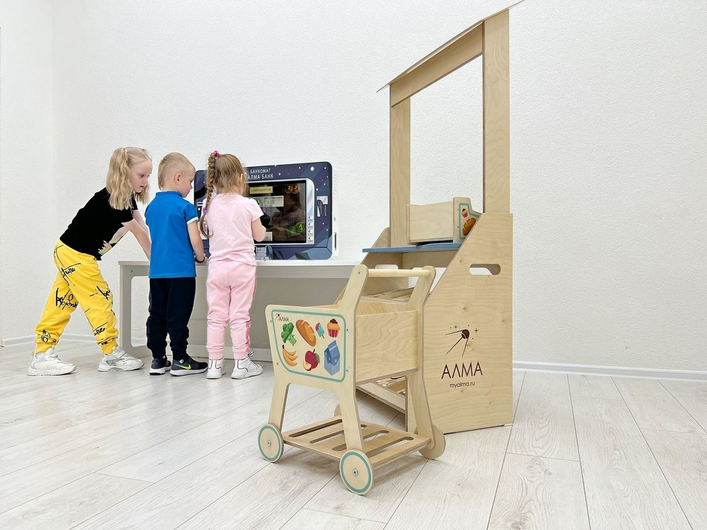 • Дополнительная атрибутика АЛМА «Магазин» (касса, тележка, продукты, макеты денег и пластиковых карт, копилки, кошельки)