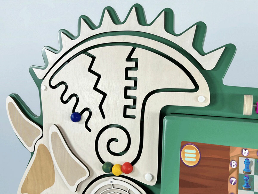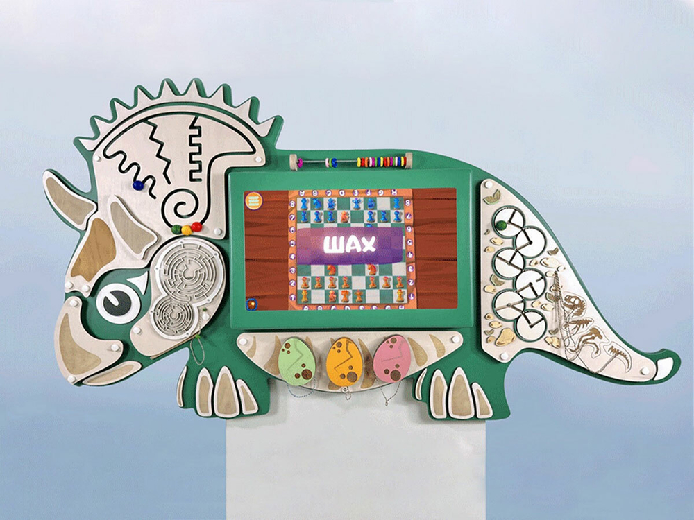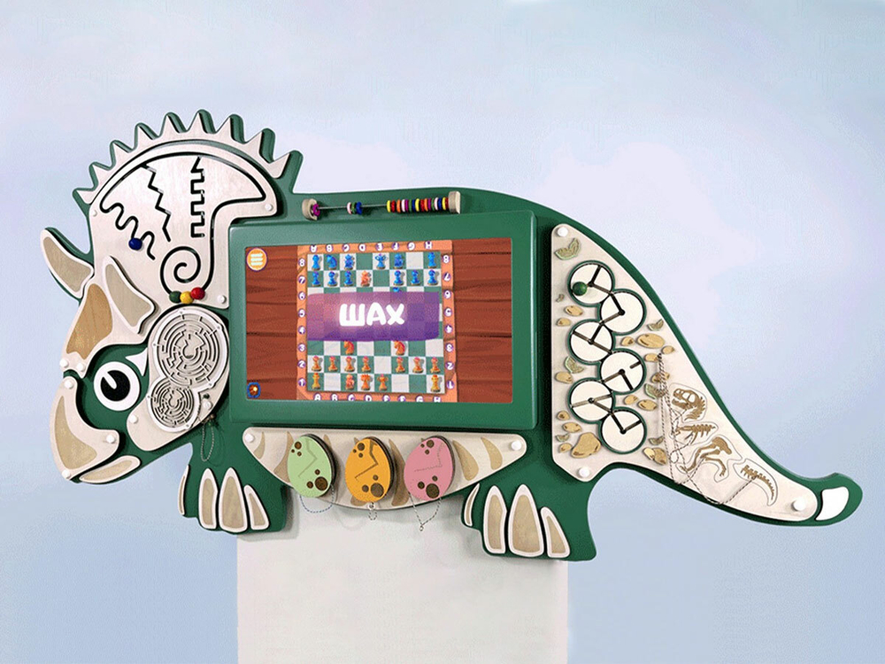 Все дети любят динозавров, в них есть что-то таинственное, древнее, фантастическое. Именно по этому мы разработали интерактивный бизиборд Динозавр Визи.