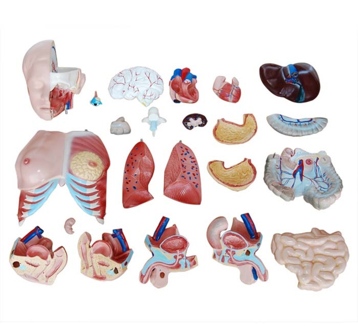 Детализированная анатомическая модель торса унисекс, которая идеально подходит для изучения строения и функций внутренних органов, позвоночника и репродуктивной системы. Модель включает 23 съёмные части, открытый позвоночник со съёмными позвонками и сегментами спинного мозга, а также взаимозаменяемые мужские и женские гениталии, включая плод в утробе.