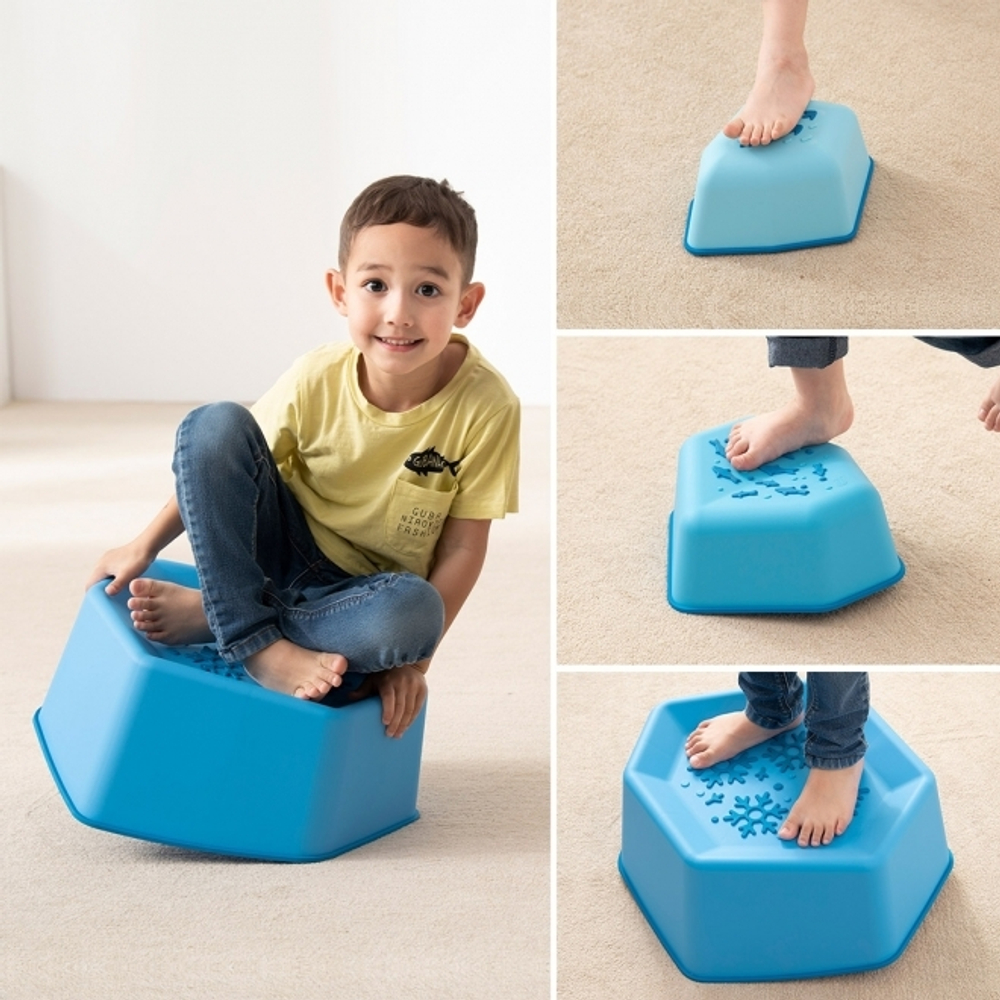 Каждая из льдинок представляет собой уникальное испытание для детей, включая устойчивую ходьбу, шатание, а также раскачивание вперед-назад. Большие льдинки можно использовать как табурет-качалку, на которой дети могут как стоять, так и сидеть.