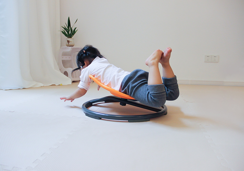Ребенок может самостоятельно балансировать сидя, стоя или лёжа животом, ловя баланс.