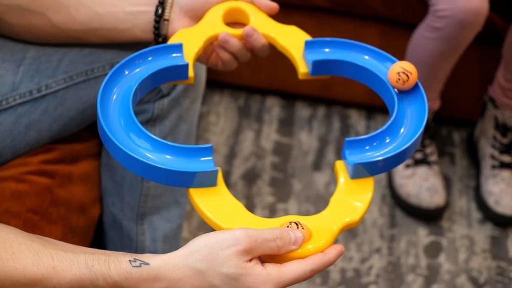 Представлен в виде двустороннего лабиринта с 2-мя шариками.