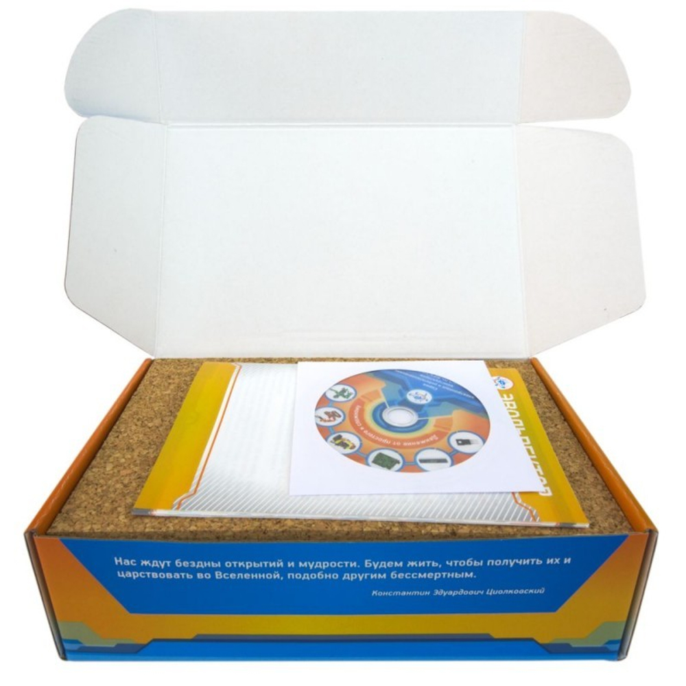 Разумеется, помимо учебных материалов в состав набора входит всё то, что понадобится новичку. Это и необходимый инструмент, и специальная подложка из пробкового дерева для защиты от повреждений мебели при выполнении паечных работ, и материалы в виде флюсов с припоем, и конечно же, несколько наборов комплектующих для того, чтобы спаять ваши первые устройства.