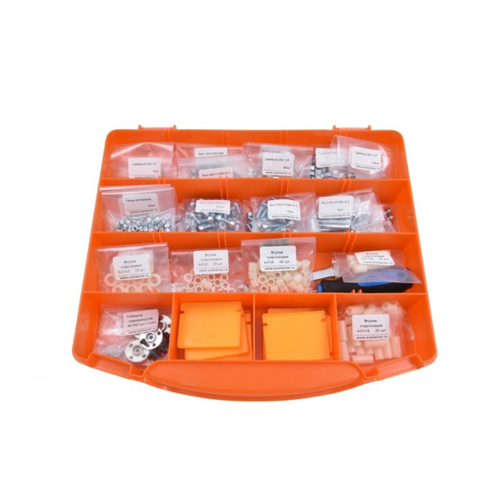 Набор крепежных деталей в виде винтов, гайек, шайб, втулок и стоек;
