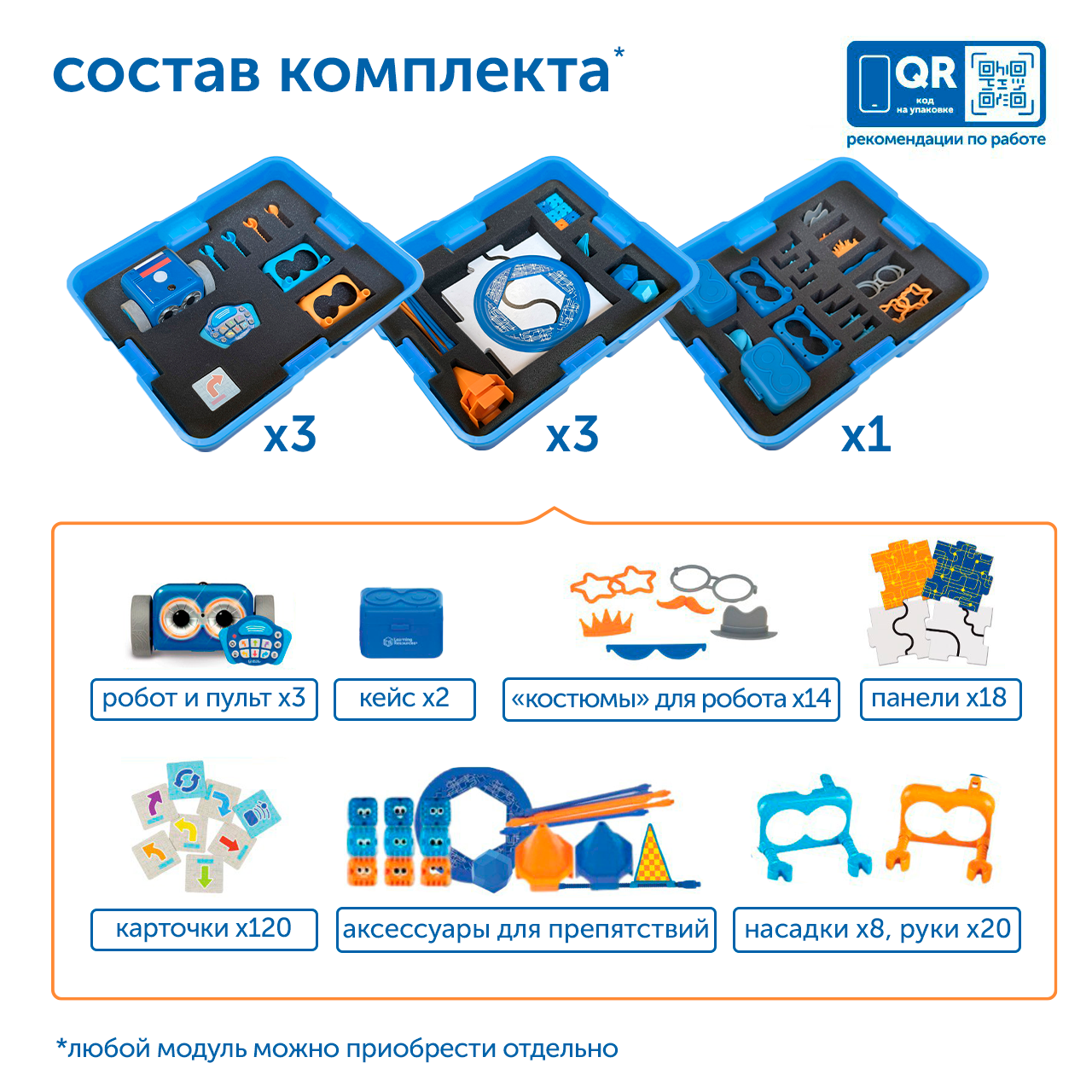 • 81 аксессуар для создания препятствий на пути робота: 24 палочек, 36 кубов, 6 конусов, 6 флажков, 6 мячей и ворота.