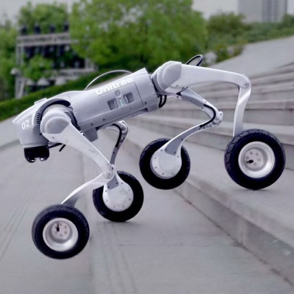 Go2-W оснащен 16 мощными моторами с высоким крутящим моментом. Это позволяет ему преодолевать препятствия высотой до 70 см — соразмерные с его «ростом». Регулируемая бионическая подвеска Go2-W делает подъем и спуск с лестниц легкой прогулкой.