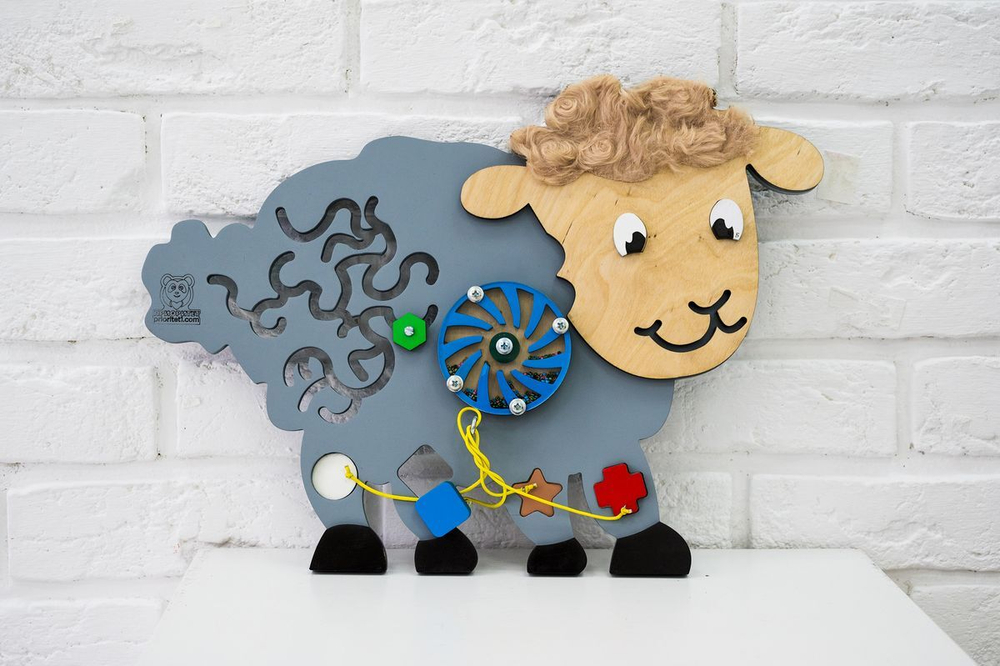 Бизиборд в тематике жизни домашних животных будет интересен многим детям. Дома можно содержать множество полезных зверюшек. Детям стоит внимательнее рассмотреть каждую деталь «ягненка». Бизипанель выглядит ярко и стильно. Она привлекает внимание малышей и взрослых, делает уроки интереснее и позитивнее. Бизидоска богата разнообразием полезных элементов. Дети с легкостью придумают увлекательные сюжеты для игр.