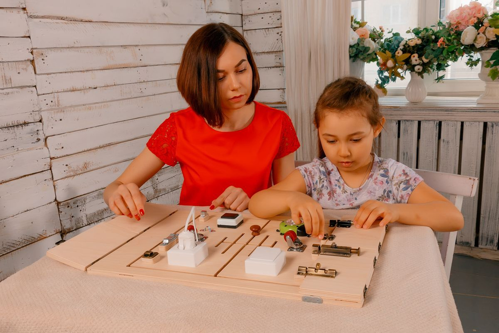 В раннем возрасте нередко малышей привлекают домашние дела. Дети начинают активно изучать замки, кнопки, розетки и т.д. Однако нельзя обеспечить полную безопасность даже в пределах одной комнаты. На помощь придет наш «домашний» бизиборд.