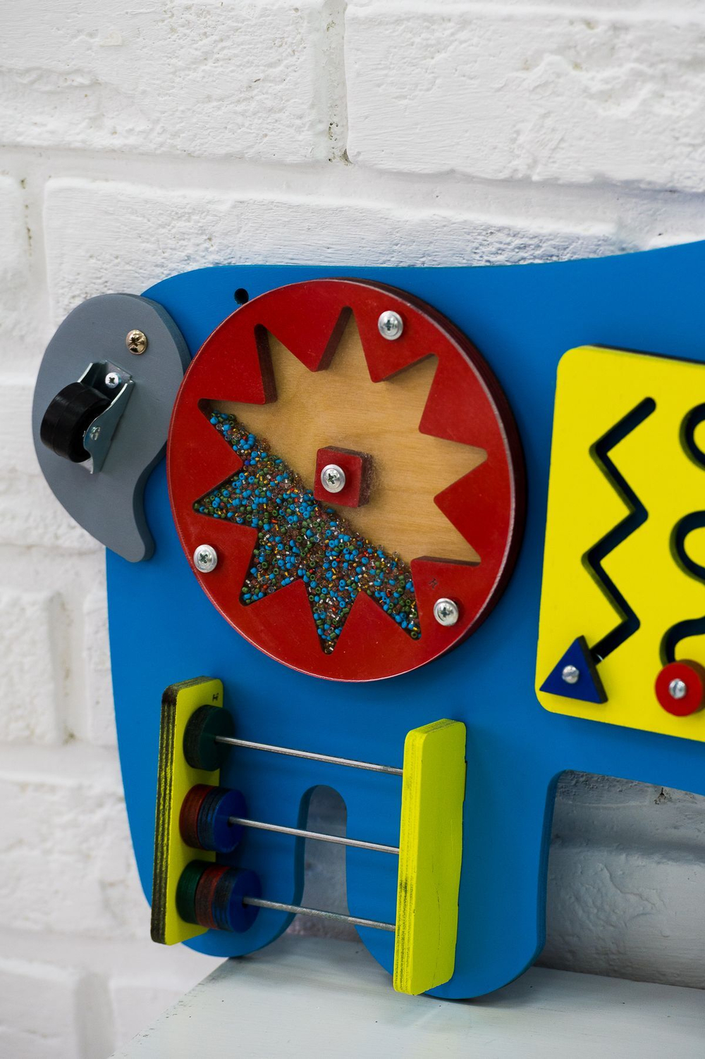 Конструкция имеет несколько движущихся элементов, которое помогают детям получить важные навыки и знания.