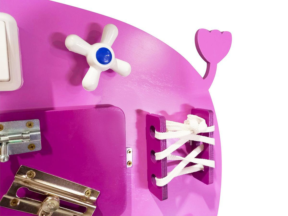 В середине бизиборда расположены открывающиеся створки с различными замками. Пытаясь открыть каждый из них, малыши учатся решать попутные задачи и преодолевать препятствия, концентрируясь на поставленной цели;