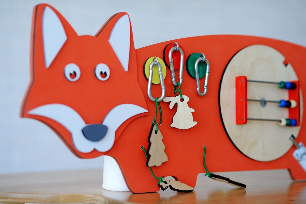 Бизиборд в тематике жизни диких животных будет интересен многим детям. Дикий мир таит в себе множество тайн и загадок природы. Детям стоит внимательнее рассмотреть каждую деталь «лисички». Бизипанель выглядит ярко и стильно. Она привлекает внимание малышей и взрослых, делает уроки интереснее и позитивнее. Бизидоска богата разнообразием полезных элементов. Дети с легкостью придумают увлекательные сюжеты для игр.