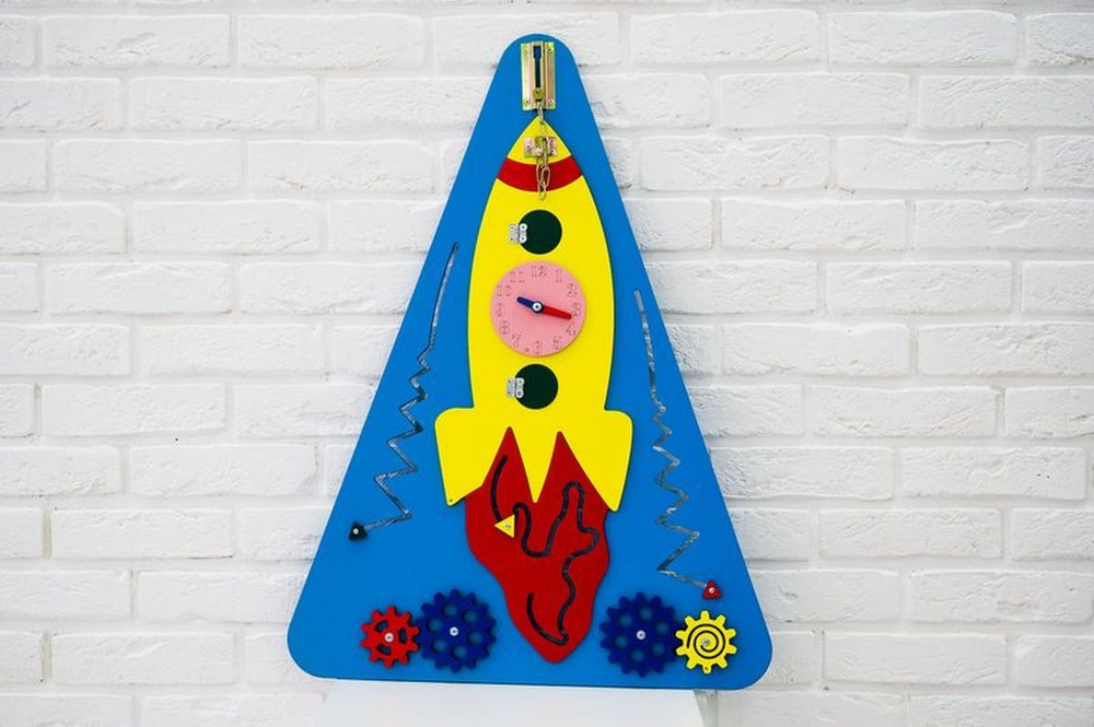 Основная тема бизиборда – космос. Панель напоминает собой необъятную вселенную, полную разнообразных планет и звезд. Во время игры ребята смогут отправиться изучать космос, изучат траекторию движения планет, выучат их названия, познакомятся с особенностями планет и звезд. «Космическая» тема бизиборда будет интересна для юных любопытных носиков и станет первой ступенью к больших наукам.
