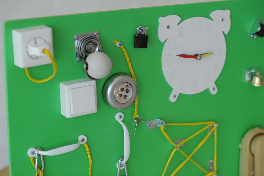 Многофункциональный бизиборд станет практичным подарком по любому поводу. Он поможет малышу стать самостоятельнее, а также удовлетворит его любопытство, ведь малыши дошкольного возраста любят познавать окружающий мир с помощью своих ручек. Безопасные элементы подобраны с учетом возрастных особенностей ребенка – они не имеют острых граней или токсичных веществ в составе. Универсальная конструкция позволяет разместить бизиборд на стене или использовать его на любой горизонтальной поверхности.